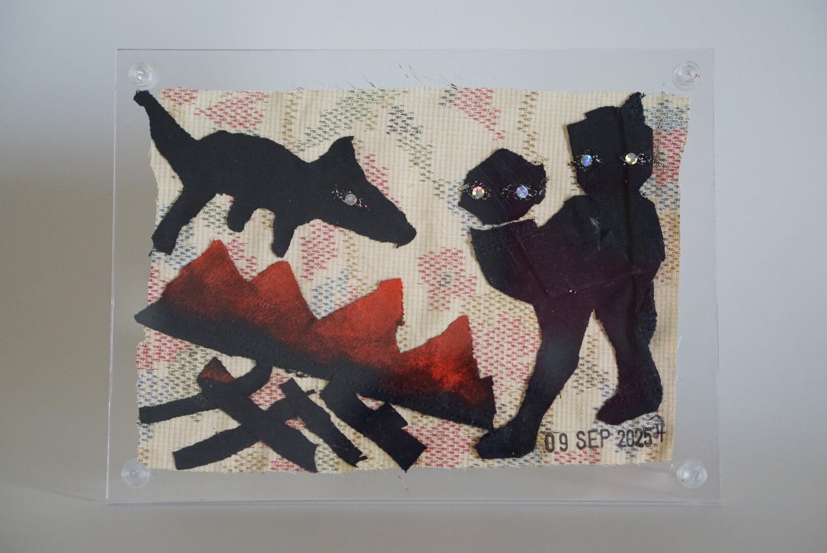 Material: acrylic paint, discarded clothing(child wear, kimono),starch glue, acryl flame